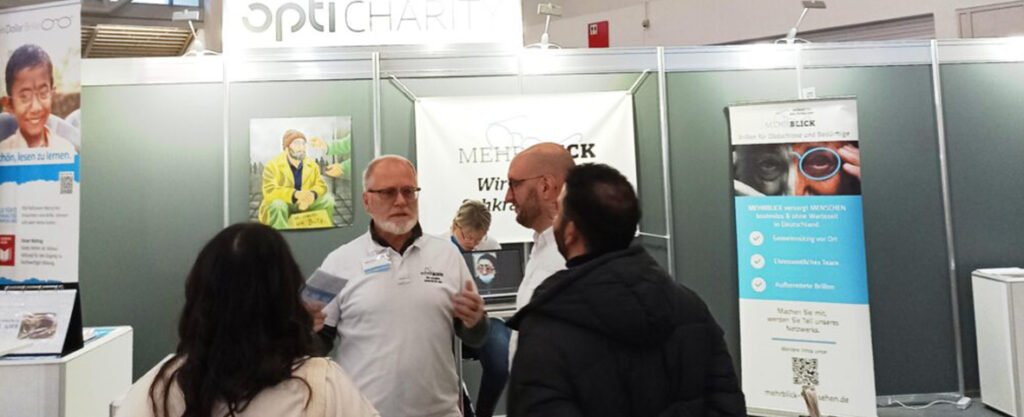 Die OPTI gehört zu Europas größten Optikermessen und ist ein Treffpunkt für die neusten Brillenmodelle und die innovativste Gerätetechnik in der Optik. Dank der kostenlosen Bereitstellung eines Standplatzes durch die Münchner Messegesellschaft GmbH war es auch für uns als kleine gemeinnützige Organisation möglich, sich einem großen Publikum vorzustellen.